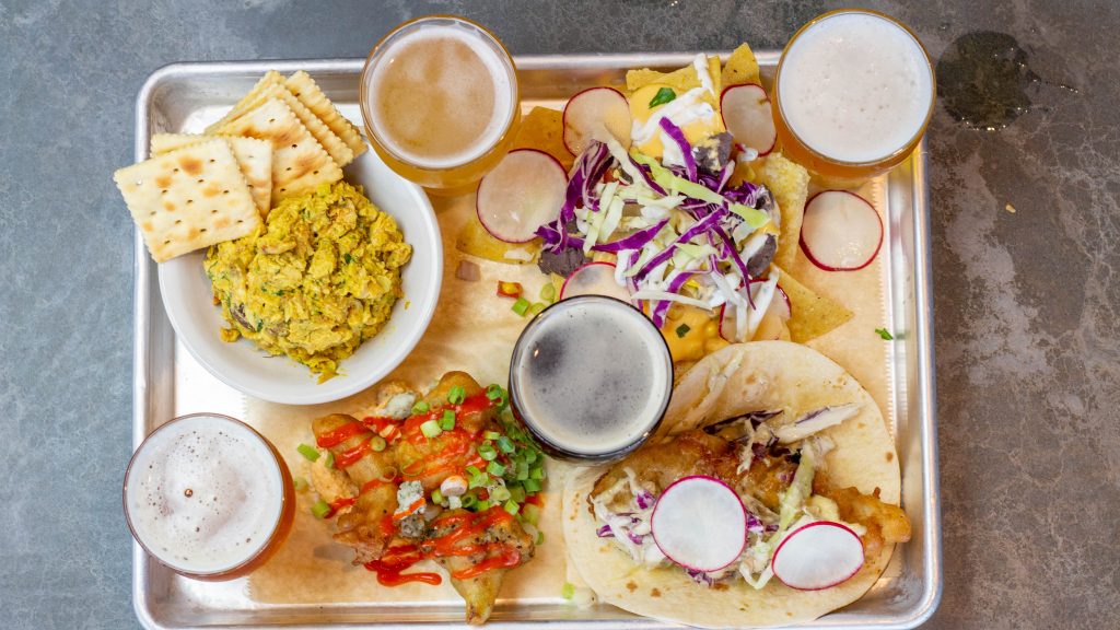 This week, our bites & flights menu has gotten a lil tweak to include our new fish taco and other fan favorites. Drop by to score 4 tasty samples from our menu paired with four beers we think make em taste even better – all for $20. See below for this month’s pairings.